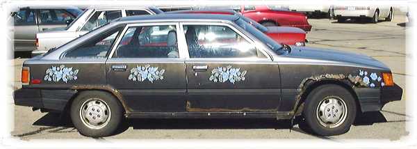 This bloke put a plank of wood across the front of he's car. PLONKER |